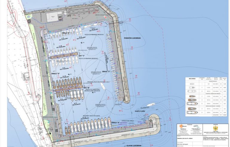 Our company, in partnership with KOZINA PROJEKTI D.O.O. SPLIT (Croatia), has prepared the conceptual and main design for the Fishing Port at Cape Đeran in Ulcinj. The Investor of the project is the Ministry of Agriculture, Forestry and Water Management. Year 2025. The planned fishing port will be a multi-purpose facility, primarily developed to accommodate